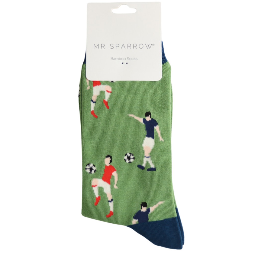 Miss Sparrow Herren Bambussocken – Fussball Motiv – Grün – Größe 40-45